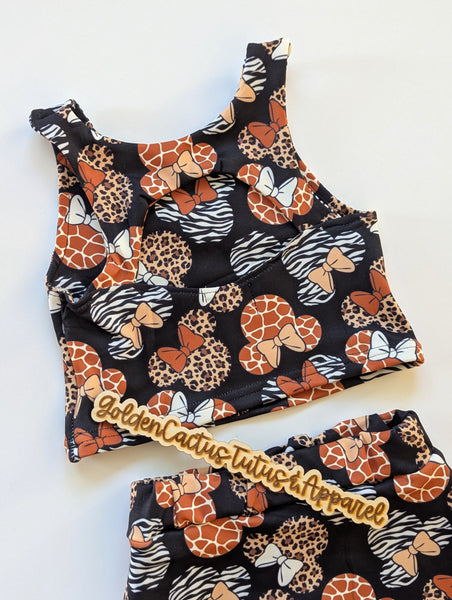 Visit the Magical Kingdom with this adorable activewear set! Featuring your favorite character bows, this skort set is so comfortable and practical for a day at the park
