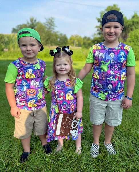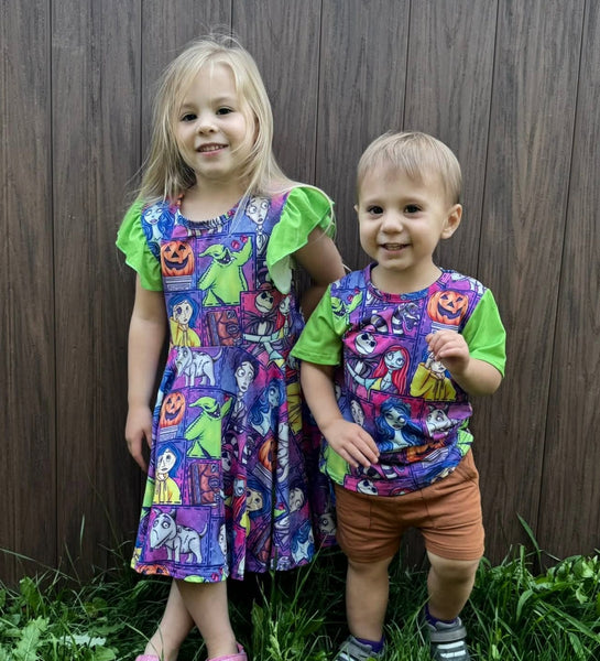 These are a silky soft cotton blend, perfect for sensitive skin. Tee fits true to size, twirl dress runs big.