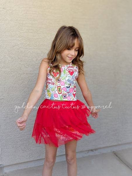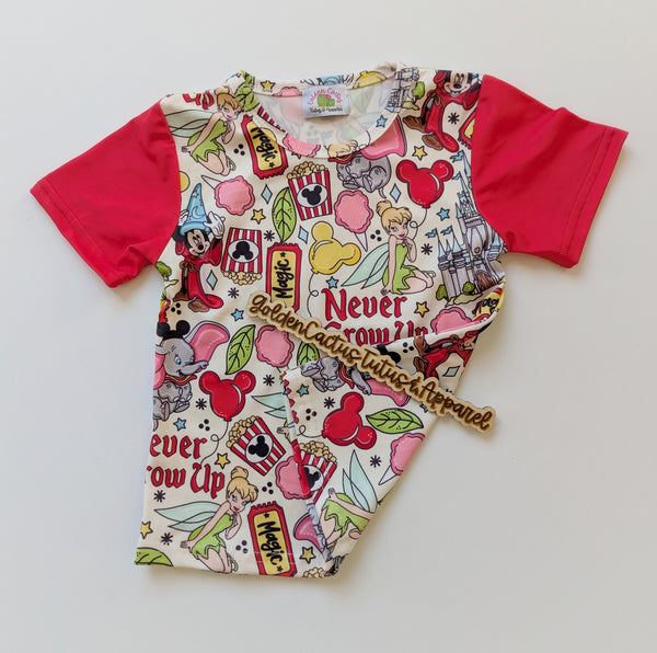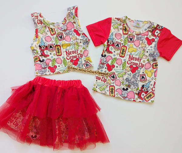 The skirt set runs big, it is recommended to size down if you're between sizes. The tee is true to size. Silky soft cotton blend, perfect for sensitive skin.