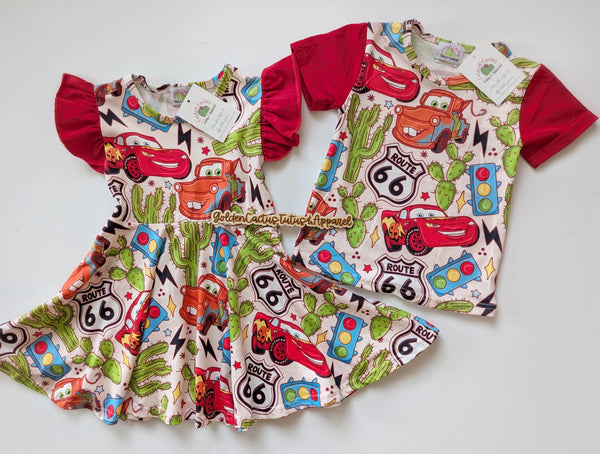 The dress runs big, it is recommended to size down if you're between sizes. The tee is true to size. Silky soft cotton blend, perfect for sensitive skin. Image placement varies